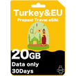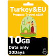 Prepaid-Reise-eSIM-Karte für die Türkei und Europa – Turkcell (nur Daten)